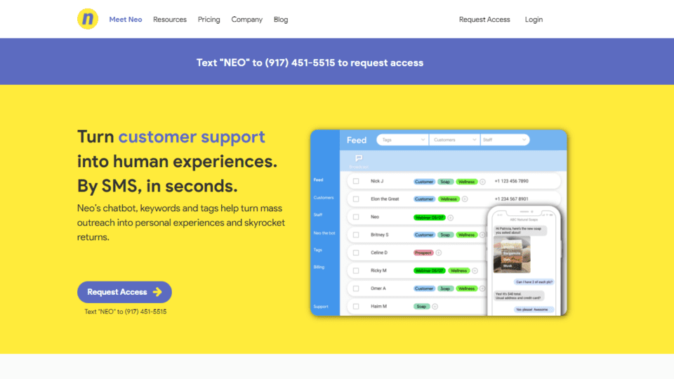 With the addition of the SMS Bot, Neo aims to help customers better reflect their brand by customizing automated replies and questions. The bot includes automated opt-in by saving the texter’s name and phone number automatically. Neo’s capabilities include: