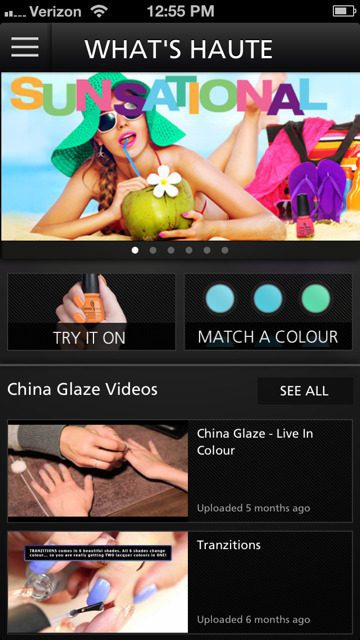 On the app homepage, consumers have access to “What’s Haute,” a section that showcases new China Glaze collections via a photo slide show. Once consumers tap on a polish shade, they are brought to a “Try It On” feature. In this section, consumers can “test” nail polish shades on a live hand model, so they can see how specific shades actually look! Users can even personalize the nail length and skin tone of the hand, then share their favorite colors with friends via Facebook, Twitter and email. Talk about interactive!