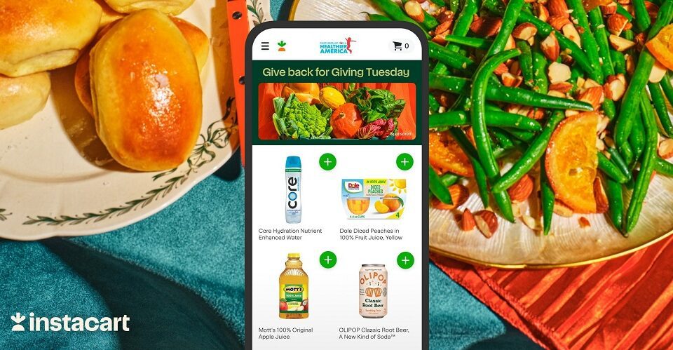 The Instacart program, its third annual Giving Tuesday campaign, benefits Partnership for a Healthier America (PHA). Participating CPG companies include Keurig Dr. Pepper, Dole Packaged Foods and Olipop.