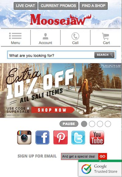 “Mobile and tablet continue to grow in their contribution to traffic, orders and revenue,” said Dan Pingree, VP of Marketing at Moosejaw. “Because of its importance, making sure the user is presented with a simple search-and-find experience is of paramount importance.”