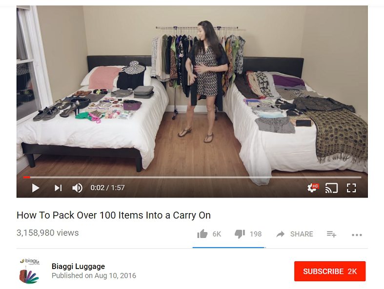 A video inspired by its star’s ability to effectively pack a carry-on bag that unexpectedly went viral has become the basis for a highly successful marketing program. Biaggi, an online-only foldable luggage company, has leveraged video marketing to a spark a 101% increase in revenue and a 135% increase in orders YOY.