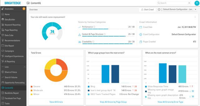 ContentIQ delivers a comprehensive web site audit natively within an SEO platform. It is designed to enable brands to create rich and responsive mobile web experiences while avoiding technical errors, duplicate content and orphan pages that result in decreased traffic, conversions and revenue.Built for the mobile web era, BrightEdge ContentIQ crawls and inspects progressive web applications, single page applications, JavaScript frameworks, schemas and social tags.