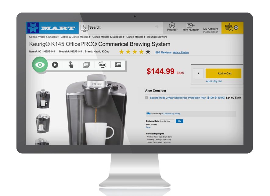 Available within the Webcollage Content Publisher platform, the Mosaic Board serves product images and video above the fold, next to the add-to-cart button and at other prominent locations on e-Commerce pages.