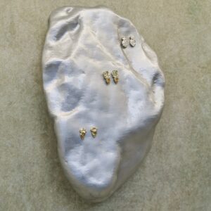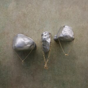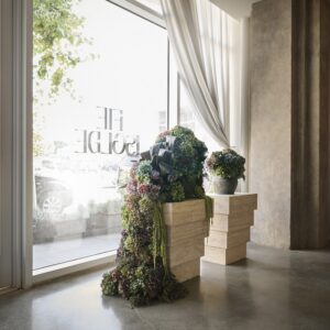 Kremer used hints of green in the space to make the gold jewelry “pop” and also used 3D printing to create custom merchandising units that resemble rocks and are reminiscent of the forms of Fie’s jewelry. “It’s amazing to see the jewelry on them because you’re able to paint a clearer image of Fie’s process in creating these gorgeous pieces,” he added.