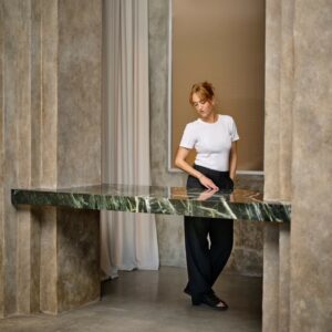 The space was designed by Mark Kremer of Extra Ordinary Studio, who said in a statement: “The concept for the store includes contemporary architectural interventions in a historic, worn space. It’s about highlighting, reflecting and celebrating the beauty in a space that has tons of history and patina. This resonated with Fie as it reminded her of the architecture of her hometown in Copenhagen where decades, if not centuries of people, have been adding and subtracting to its built environment — creating spaces that speak to their past identities. Fie’s jewelry is so much about this heirloom quality and it’s so organic and wearable.”