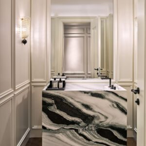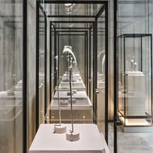 “We wanted to create a design scheme that would create a memorable experience for visitors, without overriding the pieces being showcased,” said Enis Karavil, Co-founder and Creative Director of Sanayi313 Architects in a statement. “It was important for us to echo the brand’s elegance, contemporary aesthetic and its Art Deco influences.”