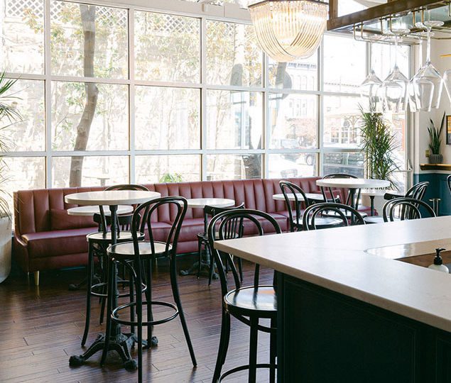 Journey + Jacobs recently completed the interior design of Nouvelle Wine Bottle + Bar located in Louisville, Ky. The overall design concept was to tell a story using strong color, a mix of pattern in wallpapers and to add a modern and eclectic mix of art.