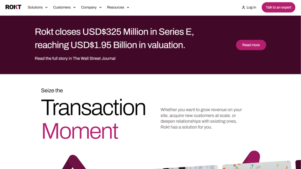 The Rokt solution leverages AI and machine learning with the goal of optimizing every customer action to increase engagement, revenue and customer acquisition. More than 3,000 brands globally, including Staples, Wayfair and Fanatics, use Rokt’s technology.