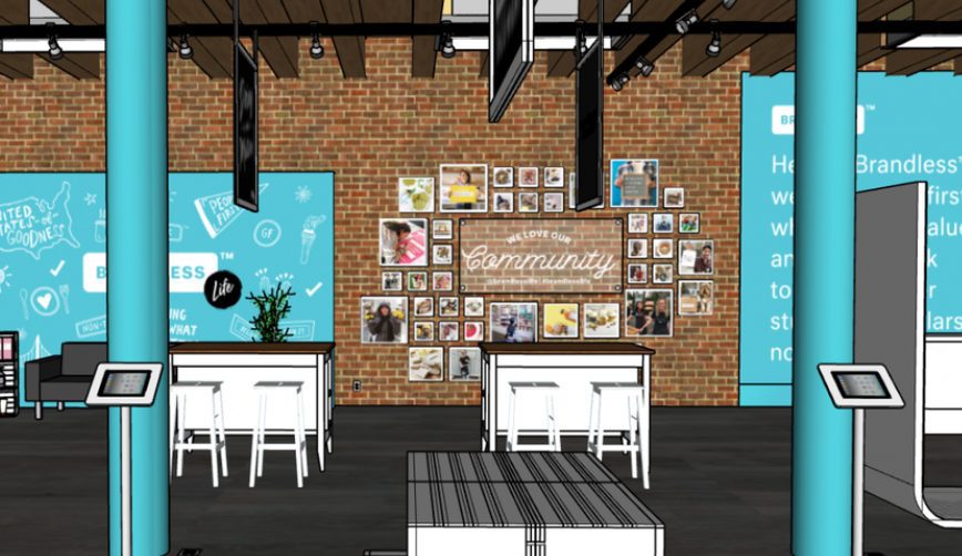 The pop-up won’t actually sell any Brandless products, but it will keep some on display and offer select samples to consumers throughout the event. The space is designed to present a real-life embodiment of the #BrandlessLife community through live and online streamed content available nationally.